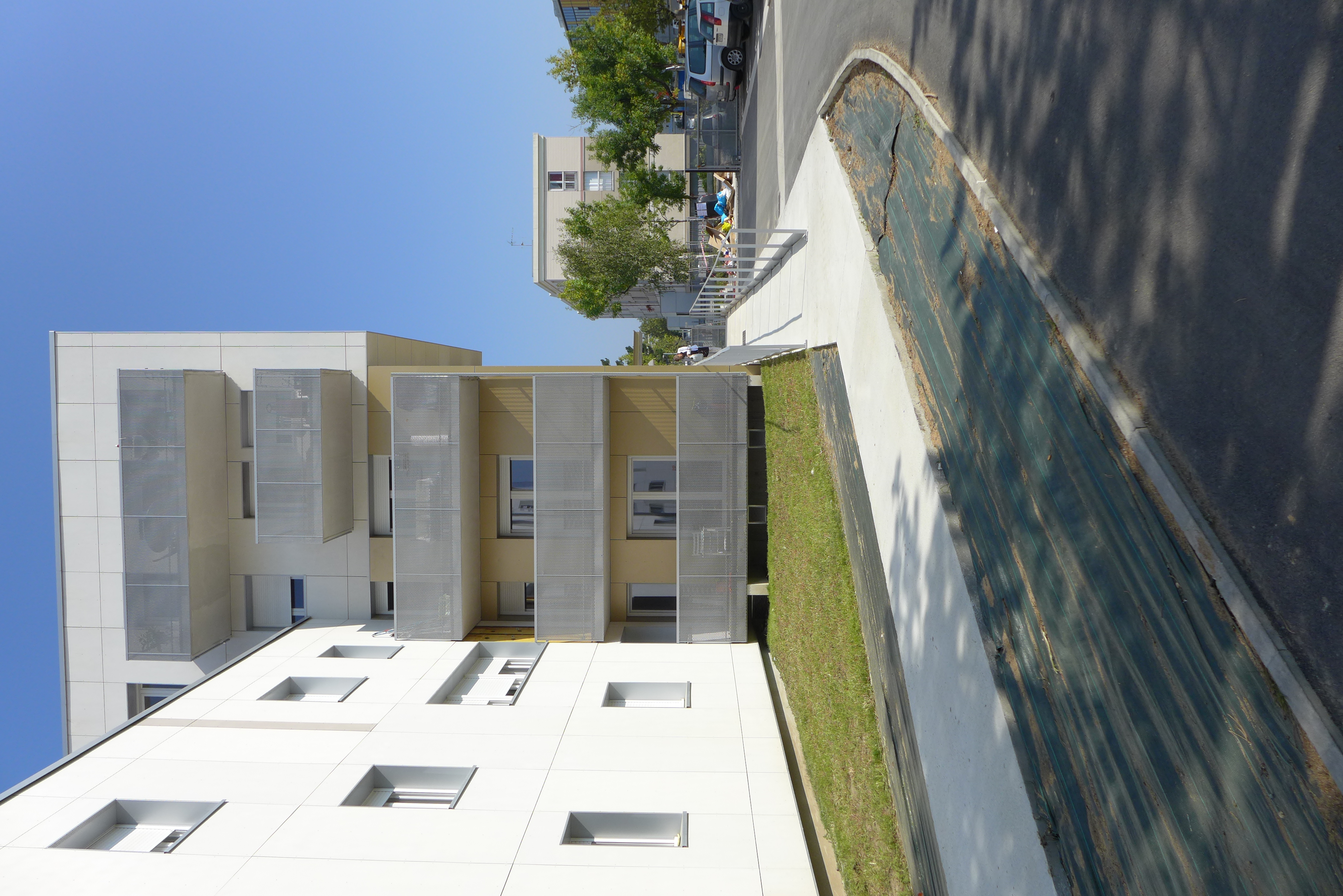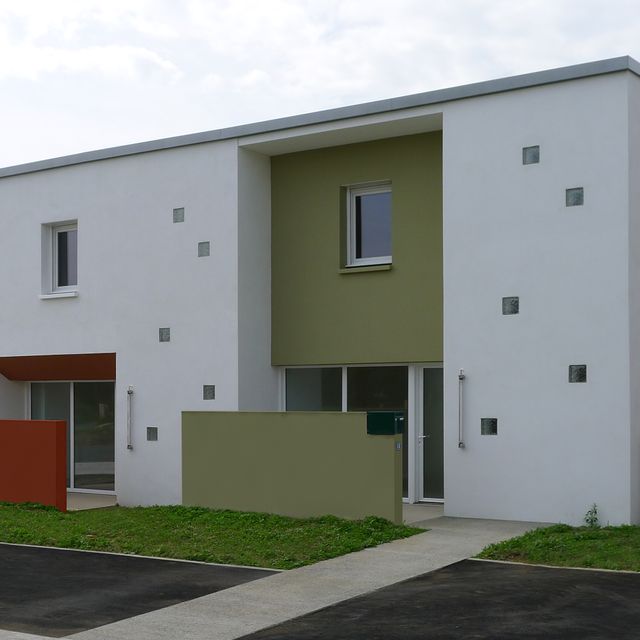 Le présent projet se situe sur la route de Tréballe sur la Commune de Saint Nazaire. Il est inscrit dans le cadre d’une démolition reconstruction. Il a pour objectif de structurer l’espace public et de préserver la quiétude à l’intérieur de l’ilot. Le principe développé décline différentes typologies. Des Maisons individuelles sont implantées en continuité des maisons existantes allées des Lilas et des Jonquilles. Un immeuble sous forme d’habitat intermédiaire est implanté à l’alignement sur la route de Tréballe. Une coursive nord dessert les logements et les pièces principales d’habitation sont orientées au Sud. Le projet est pensé avec une conception bioclimatique et plus précisément un bâti très performant limitant au maximum les déperditions de chaleur. Des solariums, prolongements généreux extérieurs aux logements favorisent les apports gratuits en hiver et limitent, du fait d’une ouverture totale, les surchauffes en été.