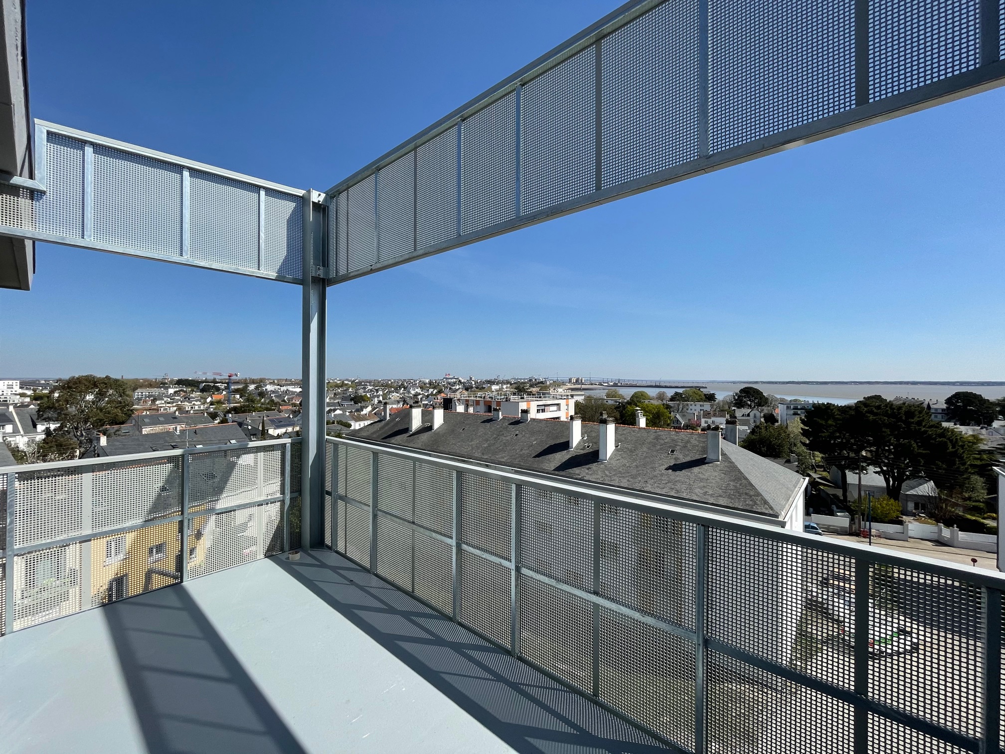 La parcelle est en promontoire sur la Loire et s’ouvre sur un panorama à 180°. Sa rive Sud a une déclivité de 13 m sur 5 m soit proche d’un plan vertical. La roche est à fleur. De cette situation remarquable, le projet décline des principes architecturaux en résonnance. Le projet est scindé en deux volumes principaux. Ils se développent en terrasses accessibles et végétalisées. Le dernier niveau est traité en attique pour en diminuer l'impact dans le paysage. Entièrement revêtu de bois, il se fond dans la canopée. D'ailleurs, depuis le pied de la falaise, la totalité du volume construit reste invisible tant par la topographie du site que par son caractère fortement arboré. Le linéaire de façade est fractionné pour laisser trois cônes de vue depuis la future voie de desserte vers la vallée de la Loire. Ce principe prend en référence le projet de Louis kahn, salk institute, qui définit un entre deux qualitatif et permet à tous les logements d’avoir une vue au Sud. Une succession de pans verticaux biais orientent le regard et préservent l'intimité de chaque logement. Coté rue, un essentage Zinc jusqu'à la hauteur du RDC ancre le projet à l'échelle du piéton et permet de l'inscrire dans les volumétries voisines.