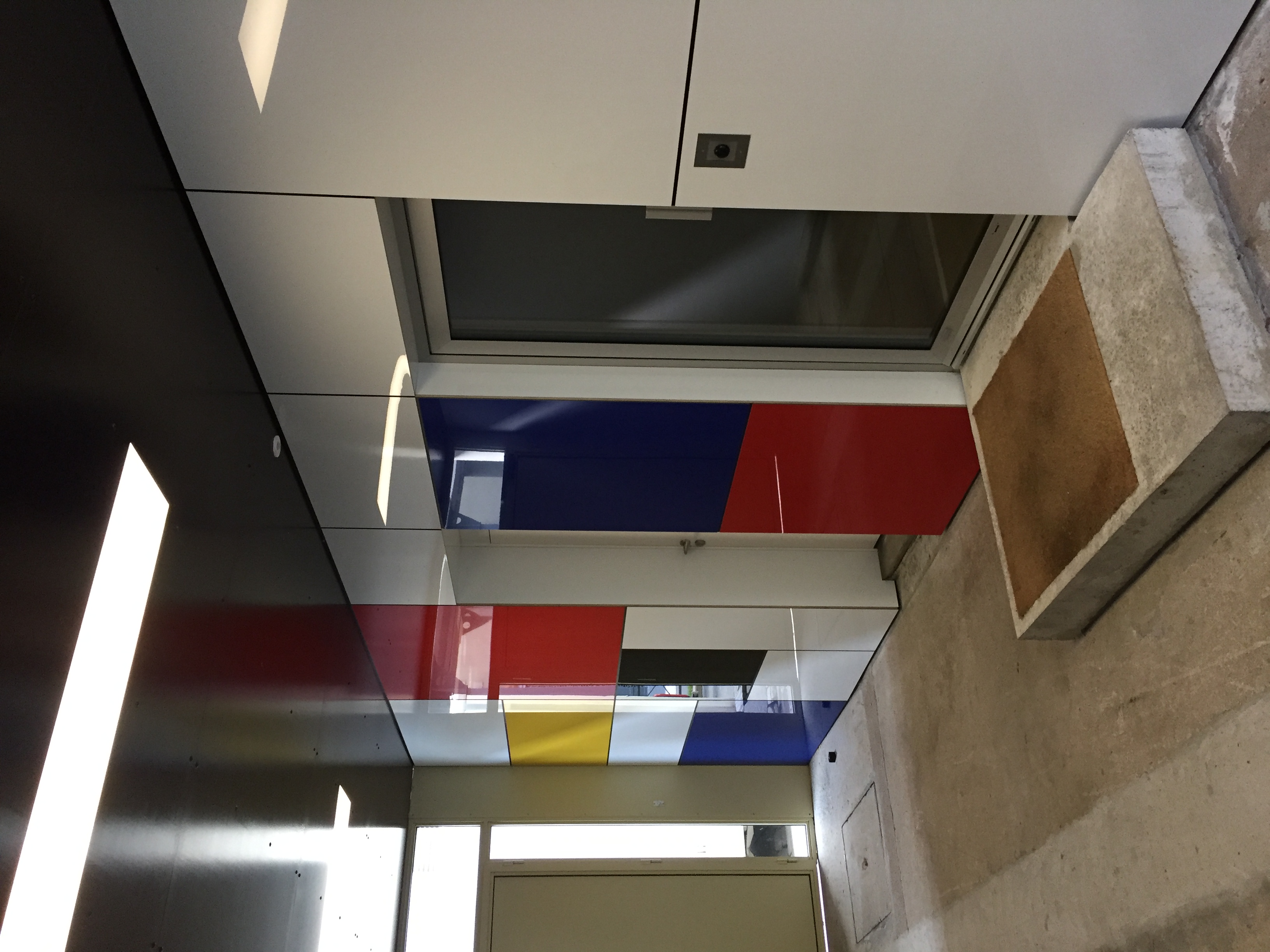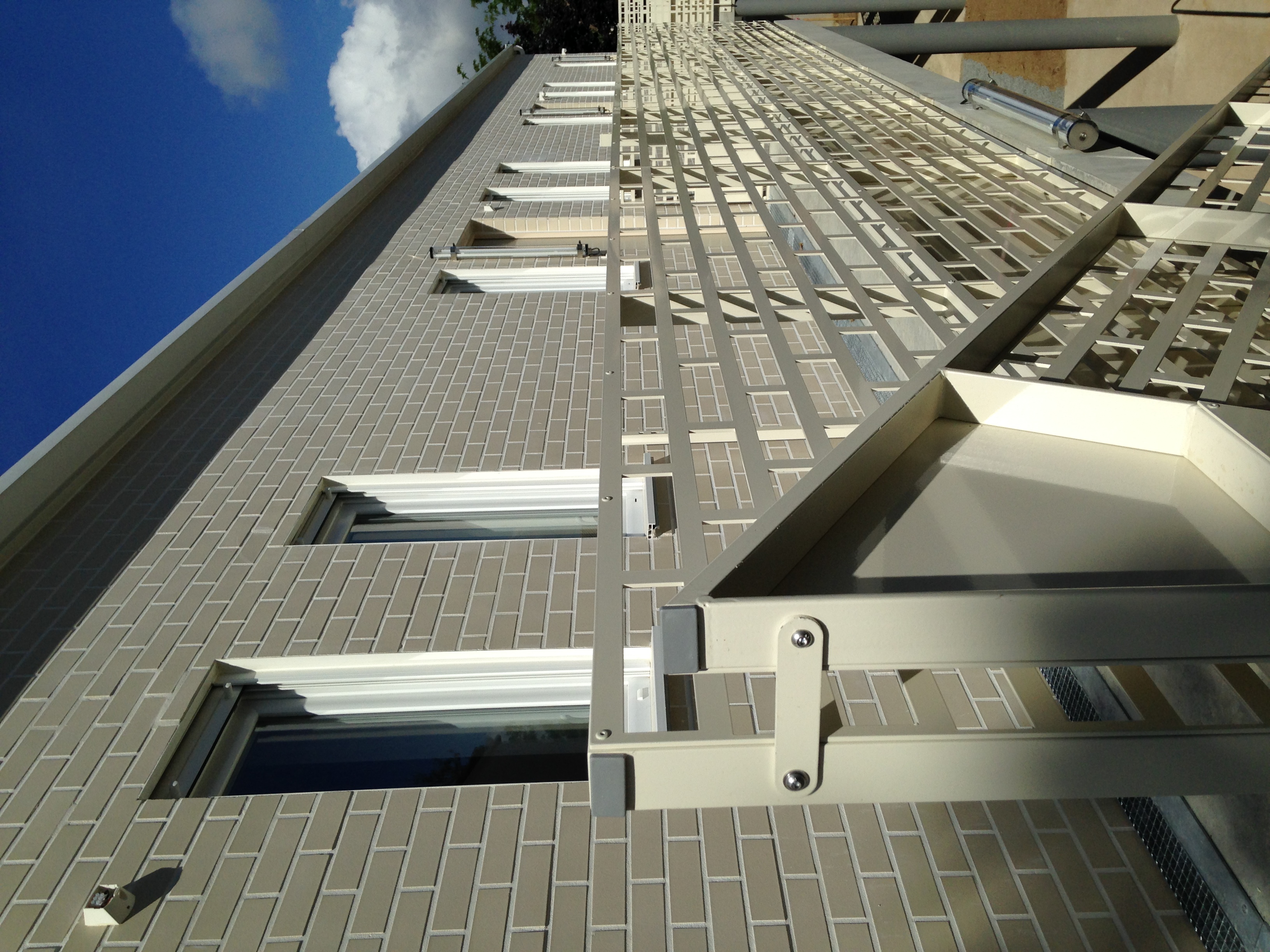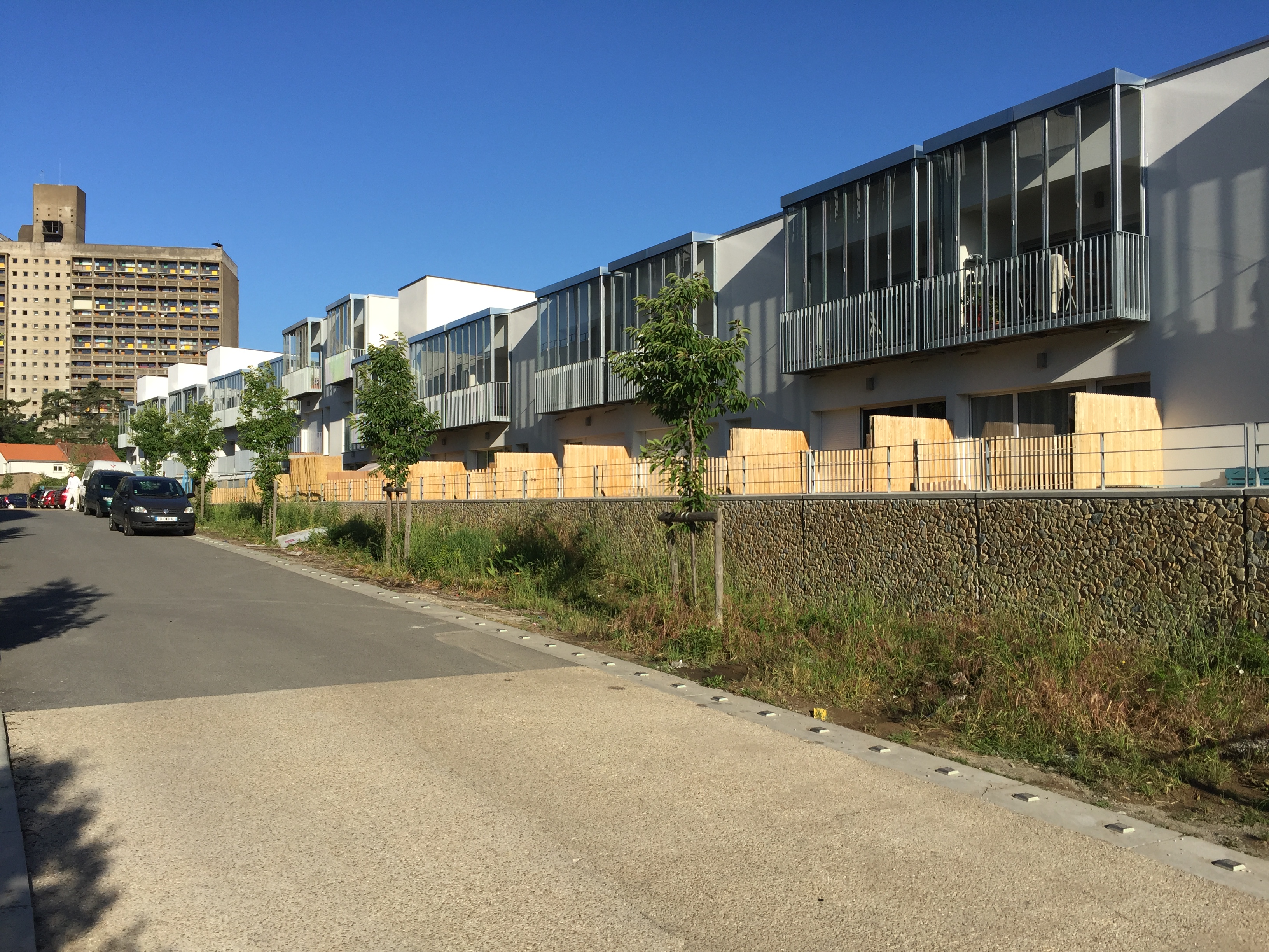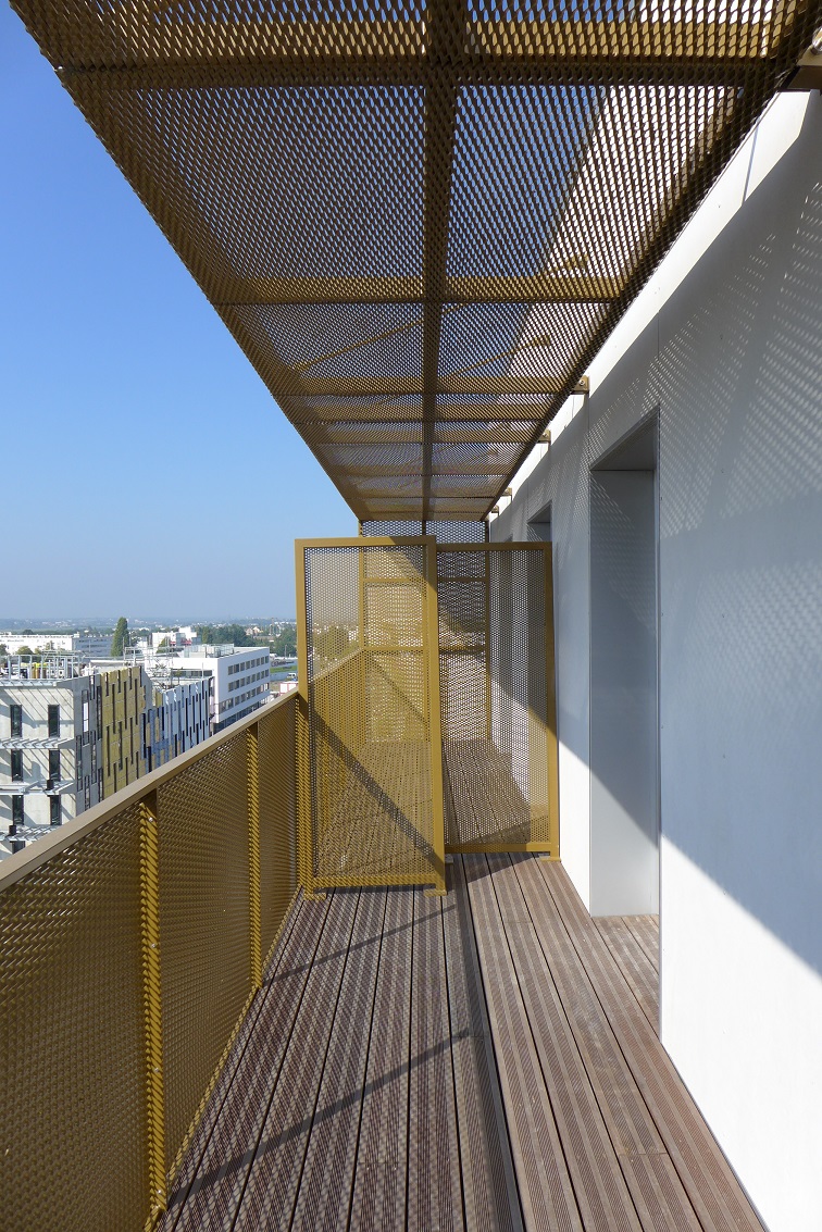 - Intégration d'un ascenseur dans les immeubles R+5 : Participe à la modification de l'image du bâtiment. L'ascenseur est vitré vers l'Est. Ce dispositif permet aux résidents, dans les déplacements, d'être toujours en relation avec le paysage