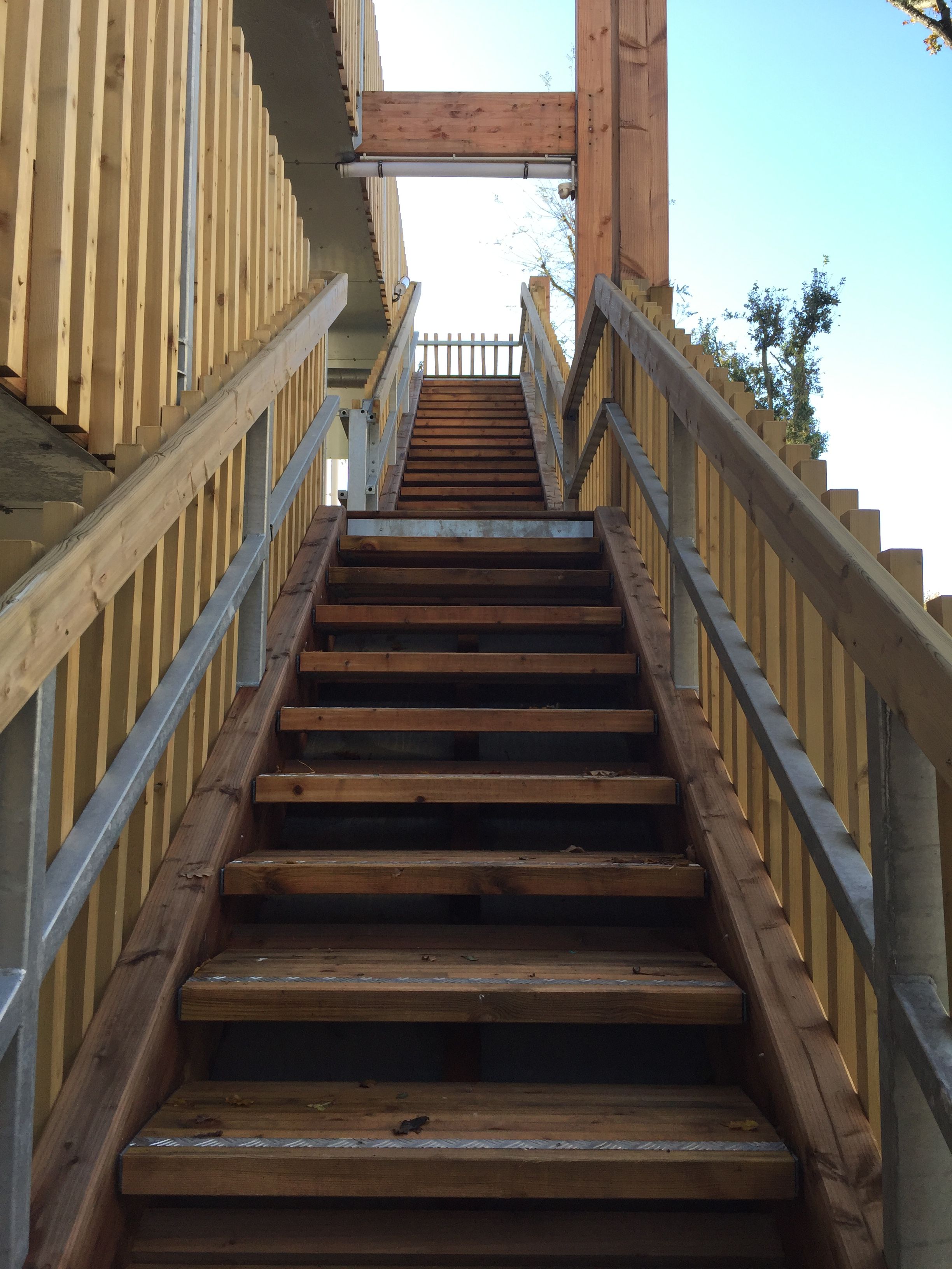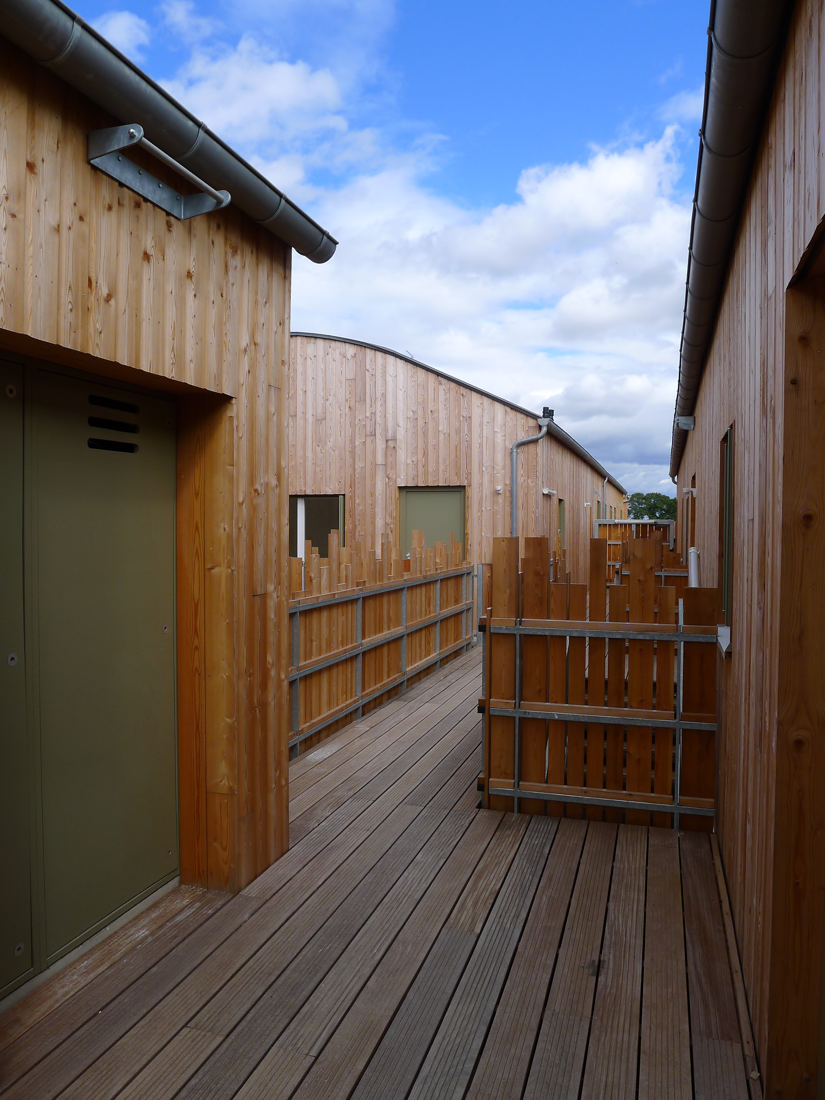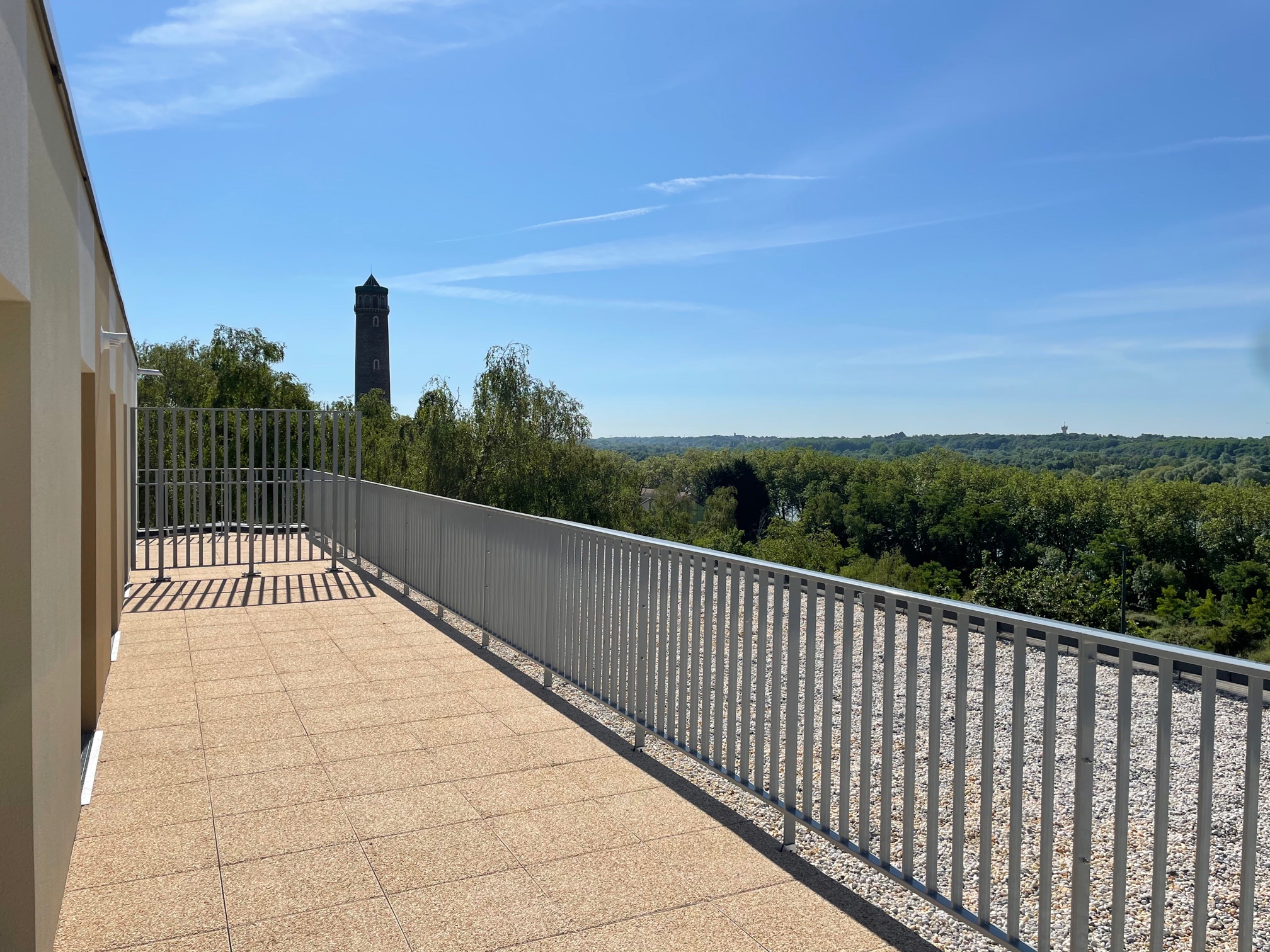 - Intégration d'un ascenseur dans les immeubles R+5 : Participe à la modification de l'image du bâtiment. L'ascenseur est vitré vers l'Est. Ce dispositif permet aux résidents, dans les déplacements, d'être toujours en relation avec le paysage