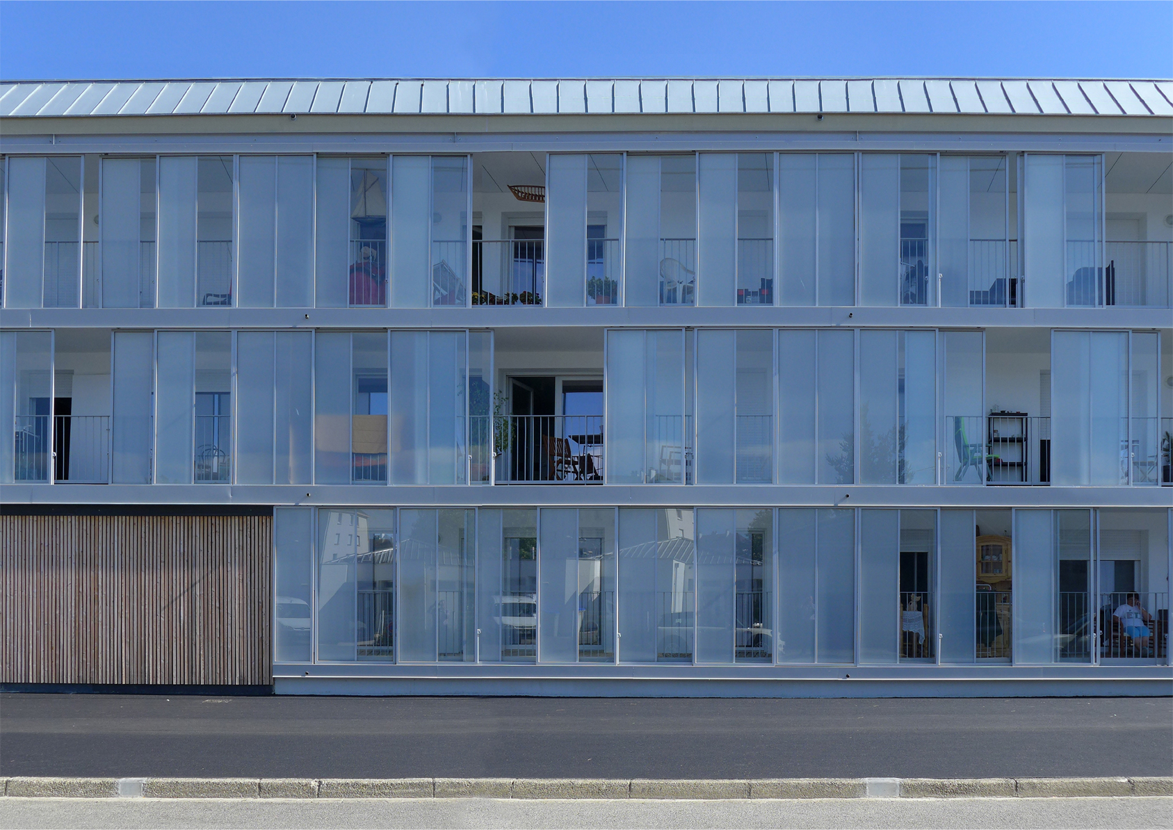 Chacune des façades habitées est qualifiée en fonction de son rapport à l’extérieur : Des façades en « participation » et les façades « vertes » Les nouveaux logements sont pensés dans une approche visant l’individualisation de l’habitat pouvant être également ressaisis selon une logique collective. A la notion d’îlot fait place celle de ville passante permettant la diffusion des déplacements à toutes les échelles, celle urbaine, celle du voisinage, celle de la domesticité.